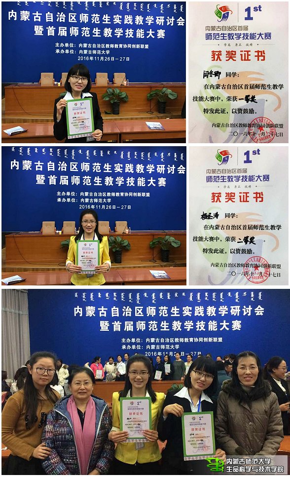 2016年11月27日,全区首届师范生教学技能大赛在我校隆重举行,来自五所高校10名选手参加了生物科学组比赛,我校派出冰球官网生物科学专业2013级闫冬卿、杨圣涛两位同学参赛,她们以生物科学组前两名的好成绩分别荣获本次大赛一等奖、二等奖。我们向获奖的同学表示热烈祝贺,感谢为此辛勤付出的所有老师。
